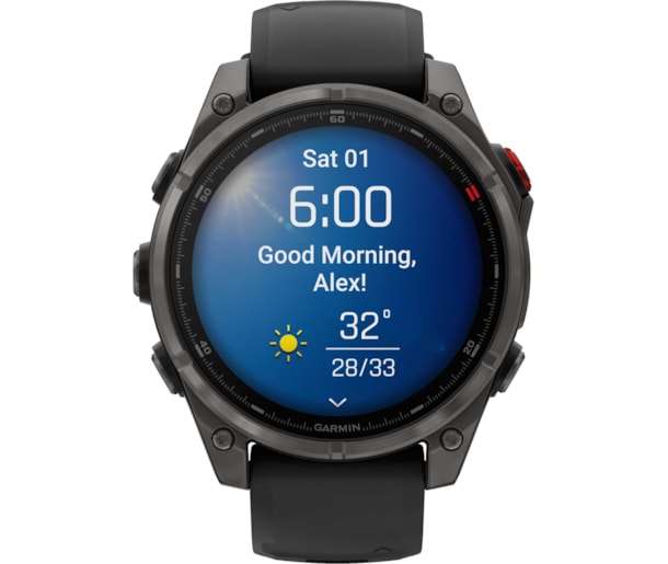 Este smartwatch premium foi desenhado para durar, é submersível e apresenta botões estanques, uma cobertura metálica para proteger os sensores e um ecrã AMOLED brilhante de 1,4" com vidro resistente a riscos e bisel em titânio, para que possas levá-lo a locais onde o telemóvel não chega. Cumpre o padrão militar dos EUA para desempenho térmico, resistência a choques e à água.