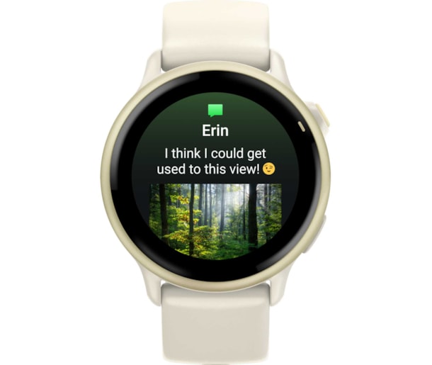 Recebe e-mails, mensagens de texto e alertas no relógio quando estiver vinculado a um smartphone Android ou iPhone. Com um telefone Android, poderás responder às mensagens de texto com o teclado do relógio e ver as fotos recebidas diretamente no ecrã do relógio.