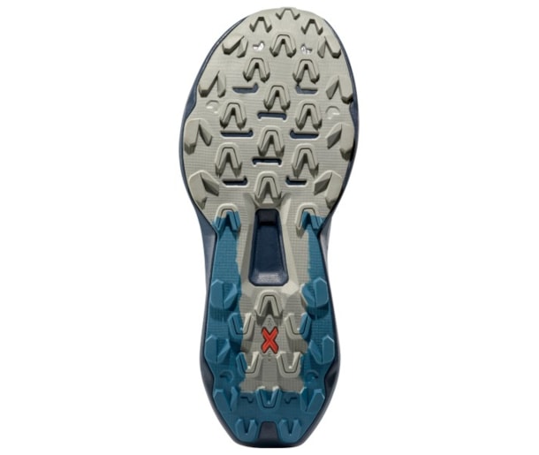 A entressola e a palmilha incorporam o material XFlow, injetado com azoto, que garante amortecimento superior e retorno explosivo de energia. A sola composta dupla FriXion Red , com tachas de 4 mm, aumenta a durabilidade nas áreas de maior desgaste, como o calcanhar, e proporciona máxima tração no meio e na frente do pé, permitindo enfrentar com segurança as secções mais técnicas.